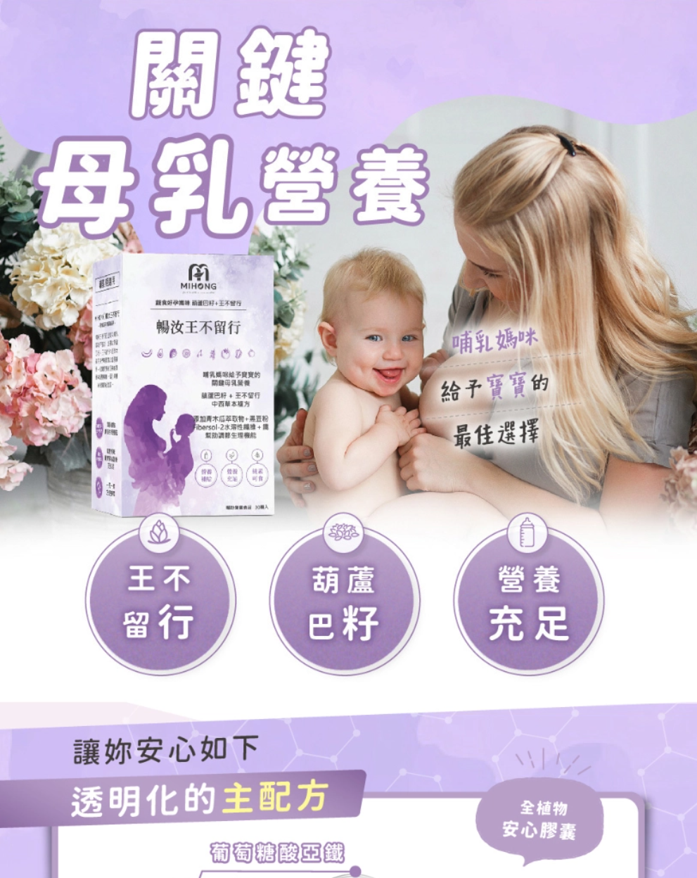 ?MIHONG® 暢汝王不留行(30顆/盒) - 蔬食好孕媽咪系列 - 哺乳期適用,專為孕哺媽咪設計,良身調配充沛的營養,使寶寶獲得滿滿營養與母愛。