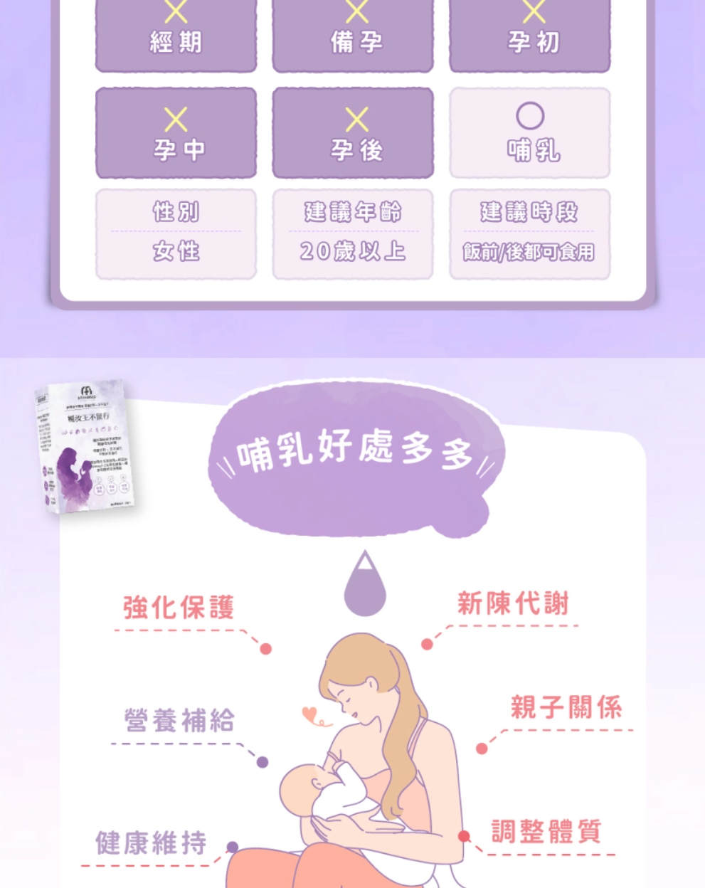 ?MIHONG®蔬食好孕媽咪系列,根據亞洲飲食習慣,參照國人膳食營養素量身調配媽咪營養補充品,素食也能食用,讓素食媽咪好安心。