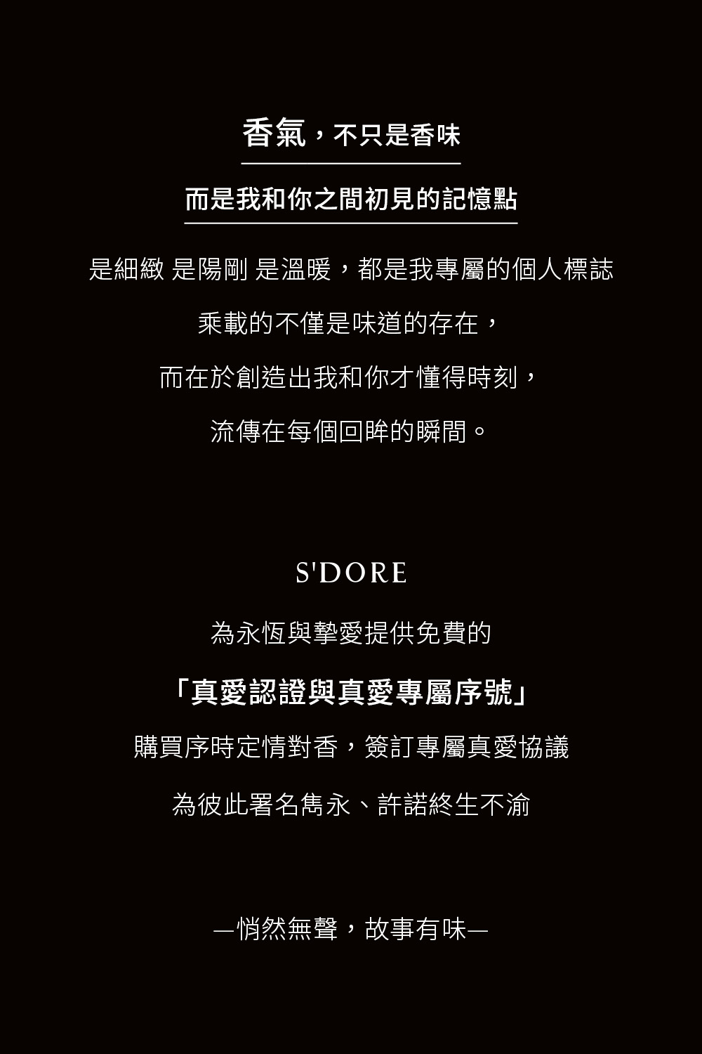 讓這些專屬於你的人生故事,從不曾成為過去,用香味,鎖住這些瑣碎故事,再讓香味,開啟一段美好的記憶。